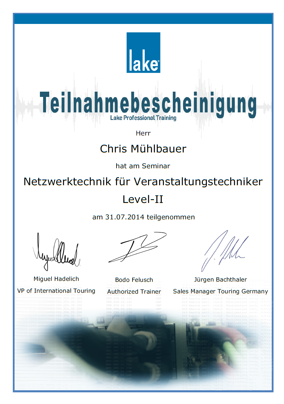 Da Netzwerktechnik auf Veranstaltungen immer öfter eine zentrale Komponente bildet, haben wir uns zu diesem Thema fortbilden lassen.